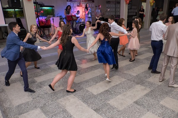 На протяжении вечера выпускники увидели увлекательное химическое шоу, насладились выступлением зажигательной кавер-группы и приняли участие в танцевальных мастер-классах!